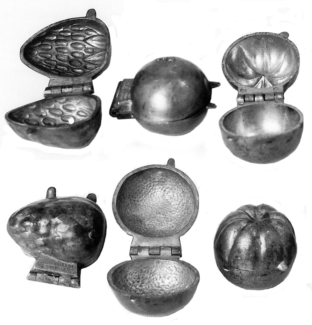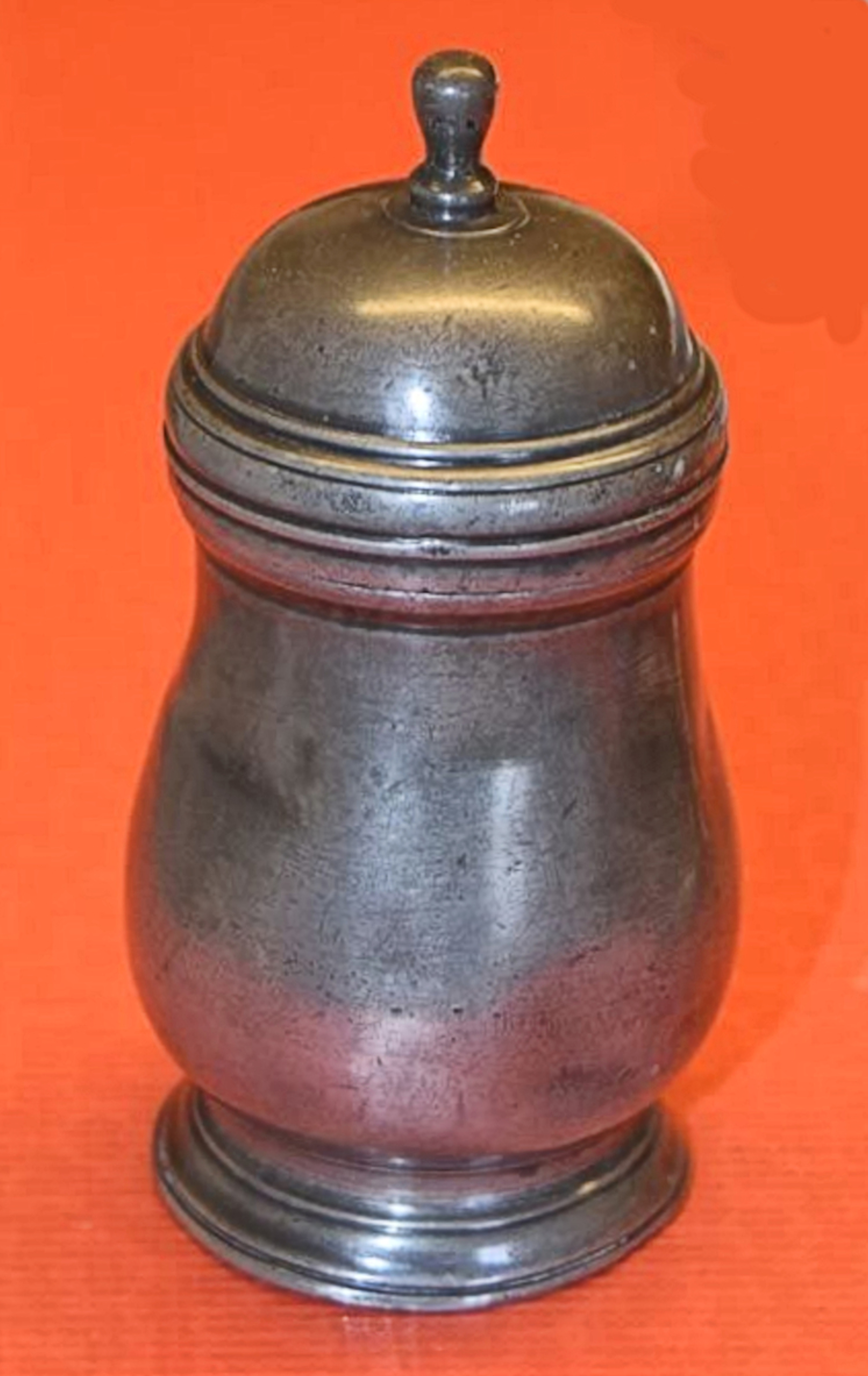 The use to which “sifters” were put is not always easy to determine. Where the holes are large the sifter was probably intended for sugar, small apertures implying spices or pepper. In early sifters the holes are roughly cut but after 1700 — 20 they are neatly drilled. Complete sets of three “casters” occasionally occur. Most sifters derive their shape from silver forms. The baluster style appeared in pewter around 1670 and had screw lids.Eighteenth century castors or sifters are uncommon although nineteenth century examples occur more frequently. Large quantities of small castors were made for pepper, many in britannia metal made in Sheffield or Birmingham.Owls, politicians,lighthouses and other various novelty peppers were made.