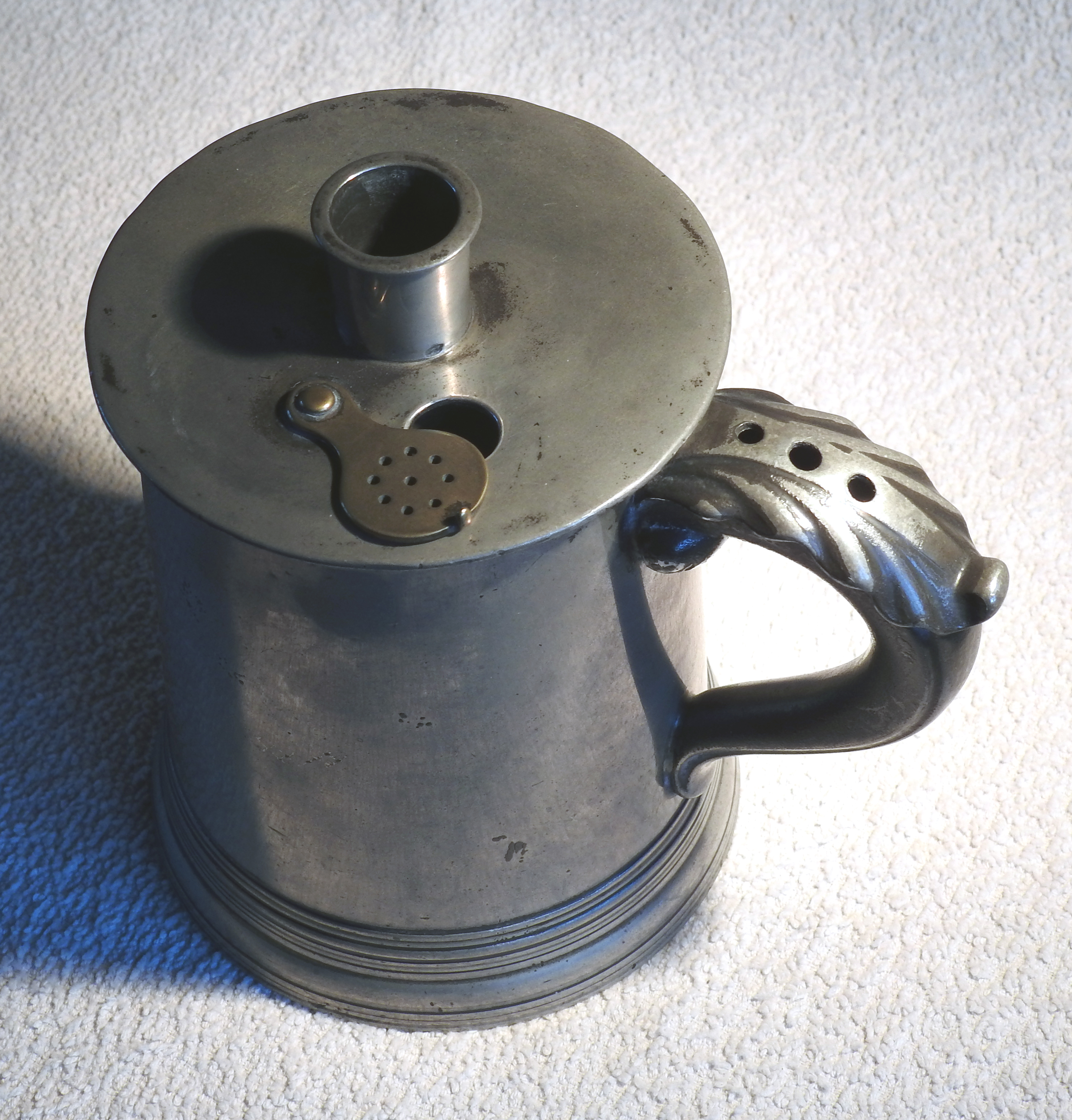 Pewter was used extensively for the everyday needs of people and the care of the sick both at home and in the poor-houses, sanitaria, and hospitals. It is impossible to identify where individual pieces were used unless they were stamped or engraved and often even this has been added at a later date simply to enhance their value. Many of the institutional objects, – bowls, plates, jugs, mugs, porringers, even bed-pans, potties and urinals etc., – were identical to those found in ordinary homes, but others were modified or created specifically for treatments or to alleviate suffering.