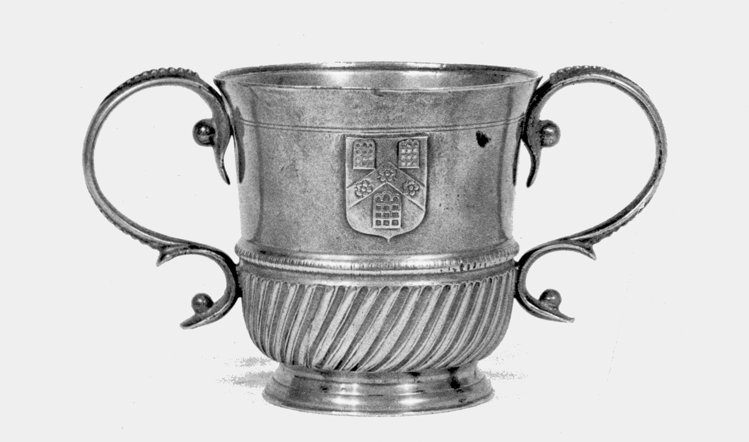 Two-handled cups are found in several sizes. In Britain there are a few large two-handled bowls known as “Loving Cups”. Some of these may have been “Wassail” cups; that is, passed from hand to hand on convivial occasions, but it is more likely that they were gifts upon betrothal or marriage. Loving cups of this style appear about 1650 and go out of fashion around 1730. Later in the eighteenth century smaller cups appear. Some may have been used as chalices in Britain , but most were for ordinary domestic use. Two-handled cups from the mid-eighteenth century onwards are found in a number of styles.